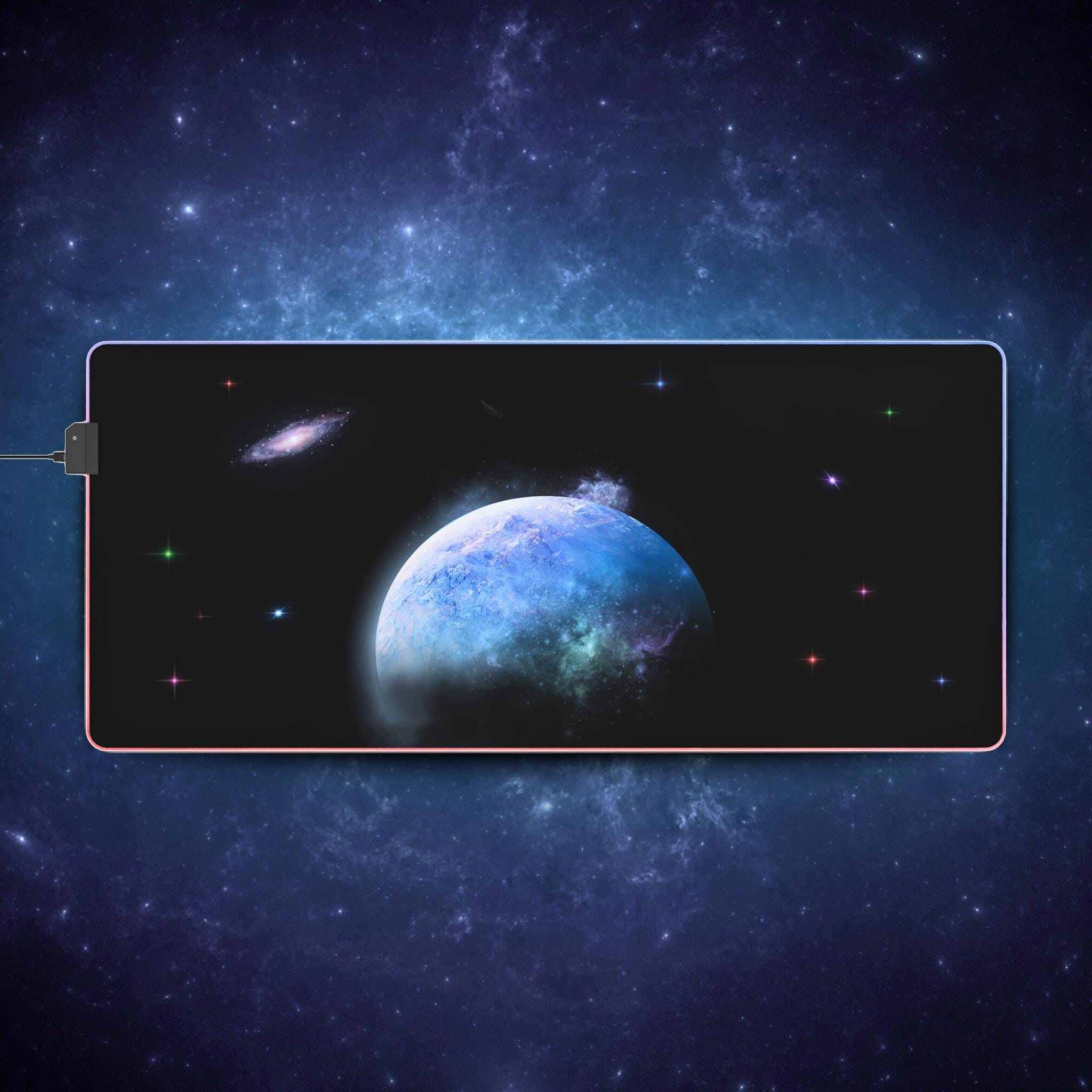 Transform your gaming experience with this vibrant LED gaming mouse pad. Designed for gamers and tech enthusiasts, it's not just a functional accessory but also a striking statement piece for your setup. The RGB lighting creates an immersive atmosphere, making every gaming session feel epic. Perfect for those who love to express their style, this mouse pad fits seamlessly into any modern workspace or gaming den. It's a fantastic gift for birthdays, holidays, or just to treat yourself. Whether you're a casual gamer or a competitive player, this mouse pad elevates your gameplay and boosts your mood with its colorful ambiance.