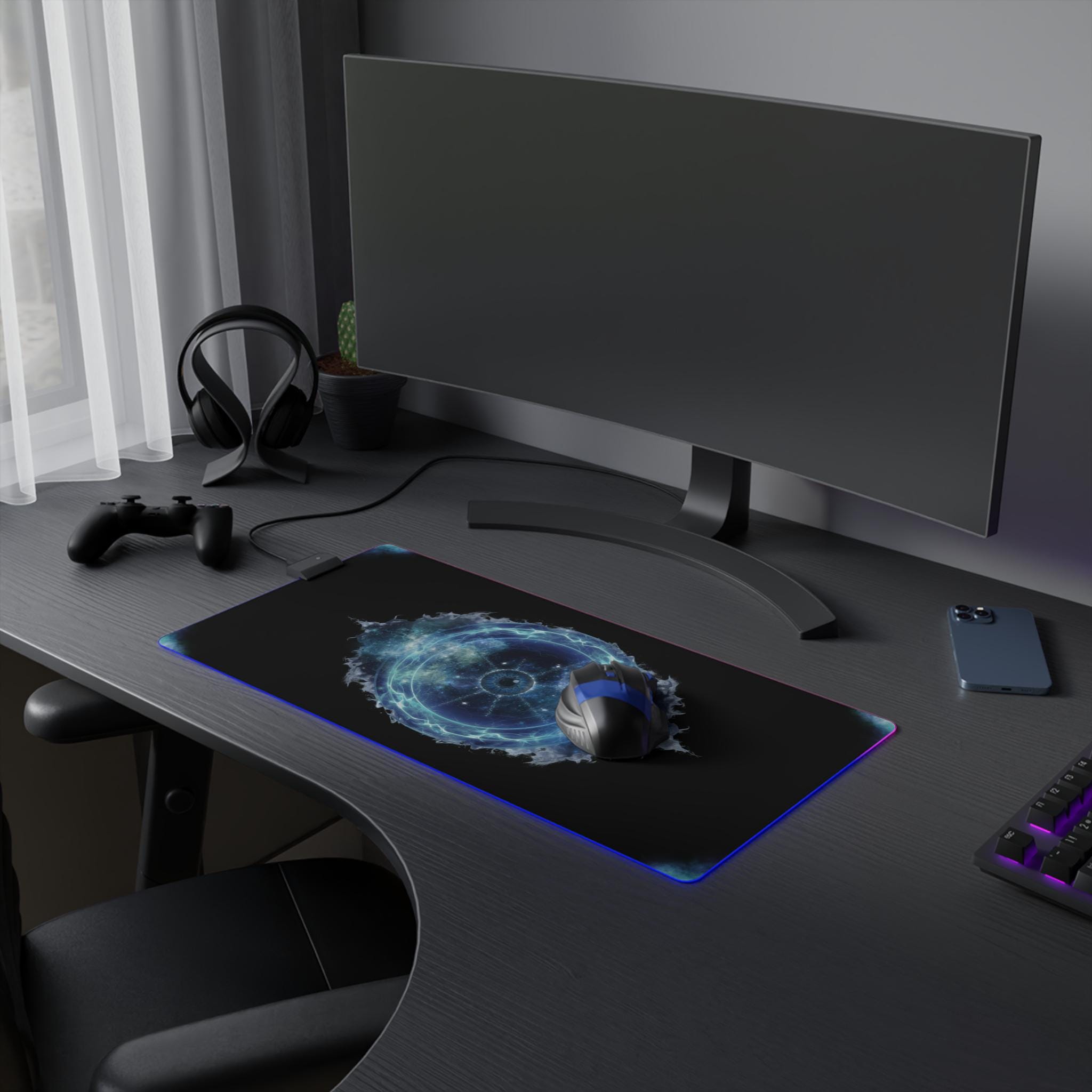 This LED gaming mouse pad brings atmosphere to late-night sessions. A wide, smooth polyester surface carries a vivid, cosmic design that feels alive under your mouse. Around the edges, a detachable RGB LED strip glows in multiple colors and creates an immersive halo across your desk. The textured rubber base grips your surface so your pad stays steady through fast flicks and long raids. Plug it in with the included micro USB cable and choose from rich colors—red, blue, green, purple, lime, yellow, or white—to match your setup or mood.