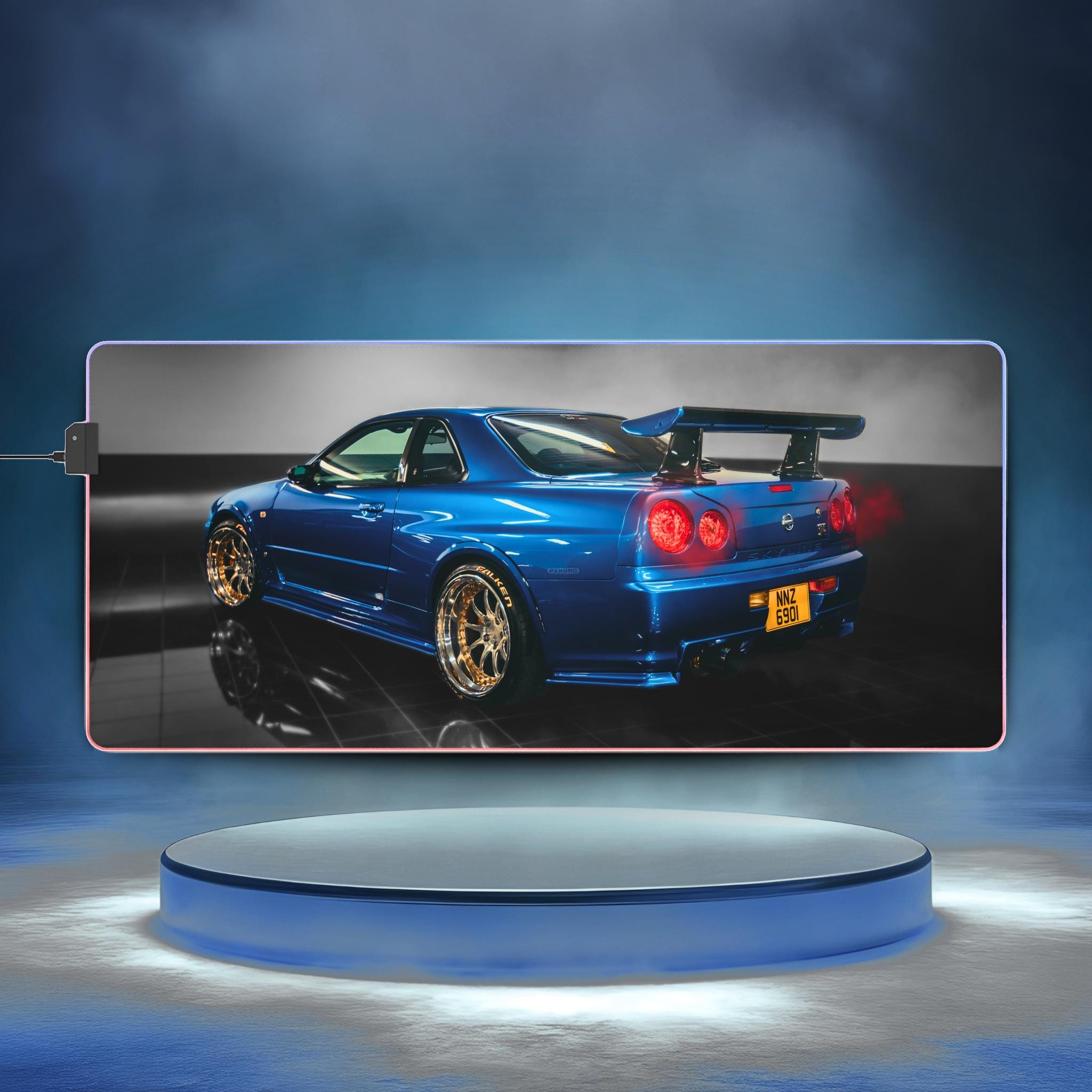 Bring the garage, track, and late-night tuning sessions to your desktop with this LED gaming mouse pad. Its large, smooth polyester surface gives your mouse silky tracking across vivid artwork, while the wraparound LED strip adds atmosphere — choose from red, blue, green, purple, lime, yellow, or white to match your setup. The dense rubber base keeps the pad planted during long play or editing sessions. A detachable micro-USB connector and included cable make setup simple, and the bright print holds up for repeated use. Whether you're lining up a perfect drift in a racing sim or building a themed battlestation, this mat adds color, control, and that race-night mood to your desk.
