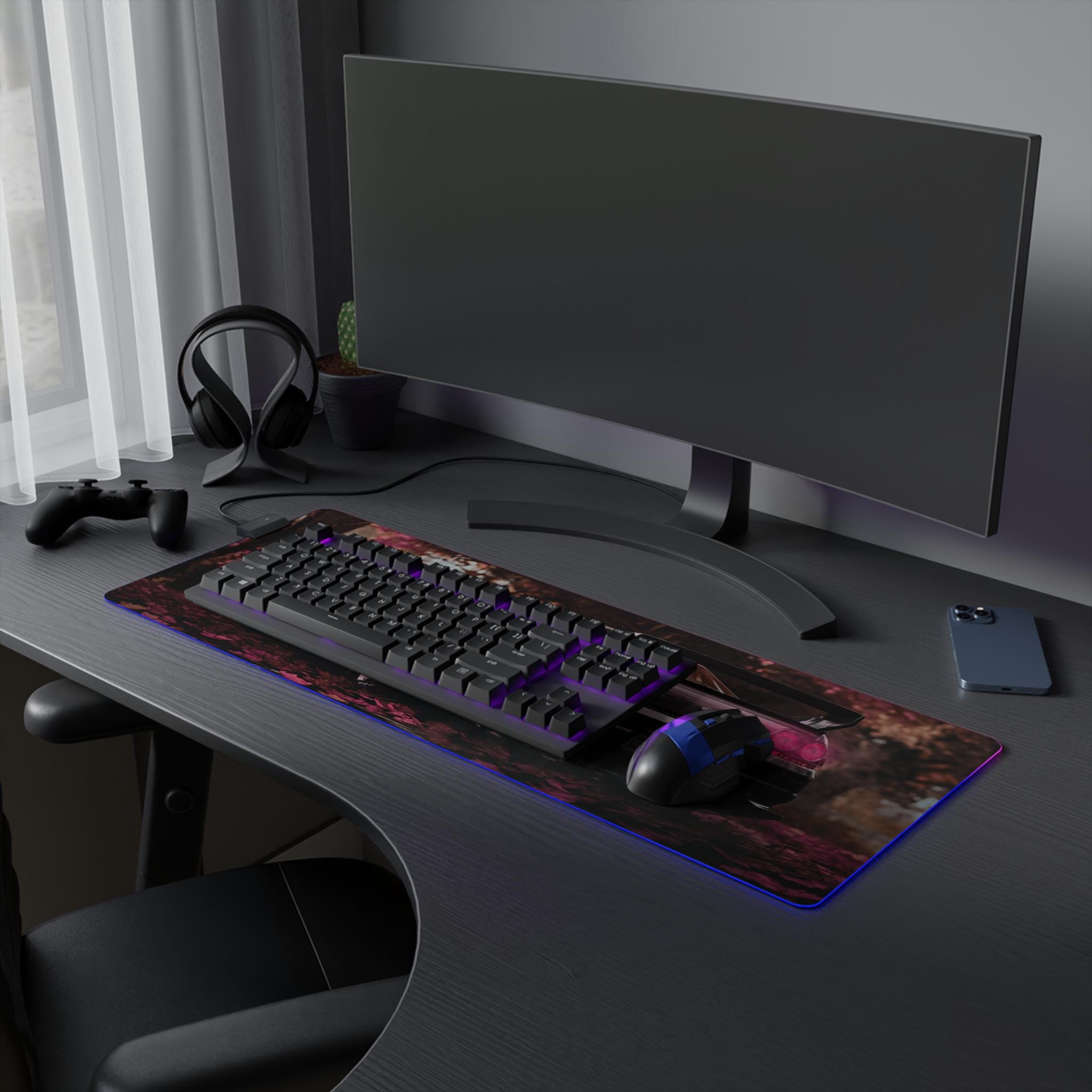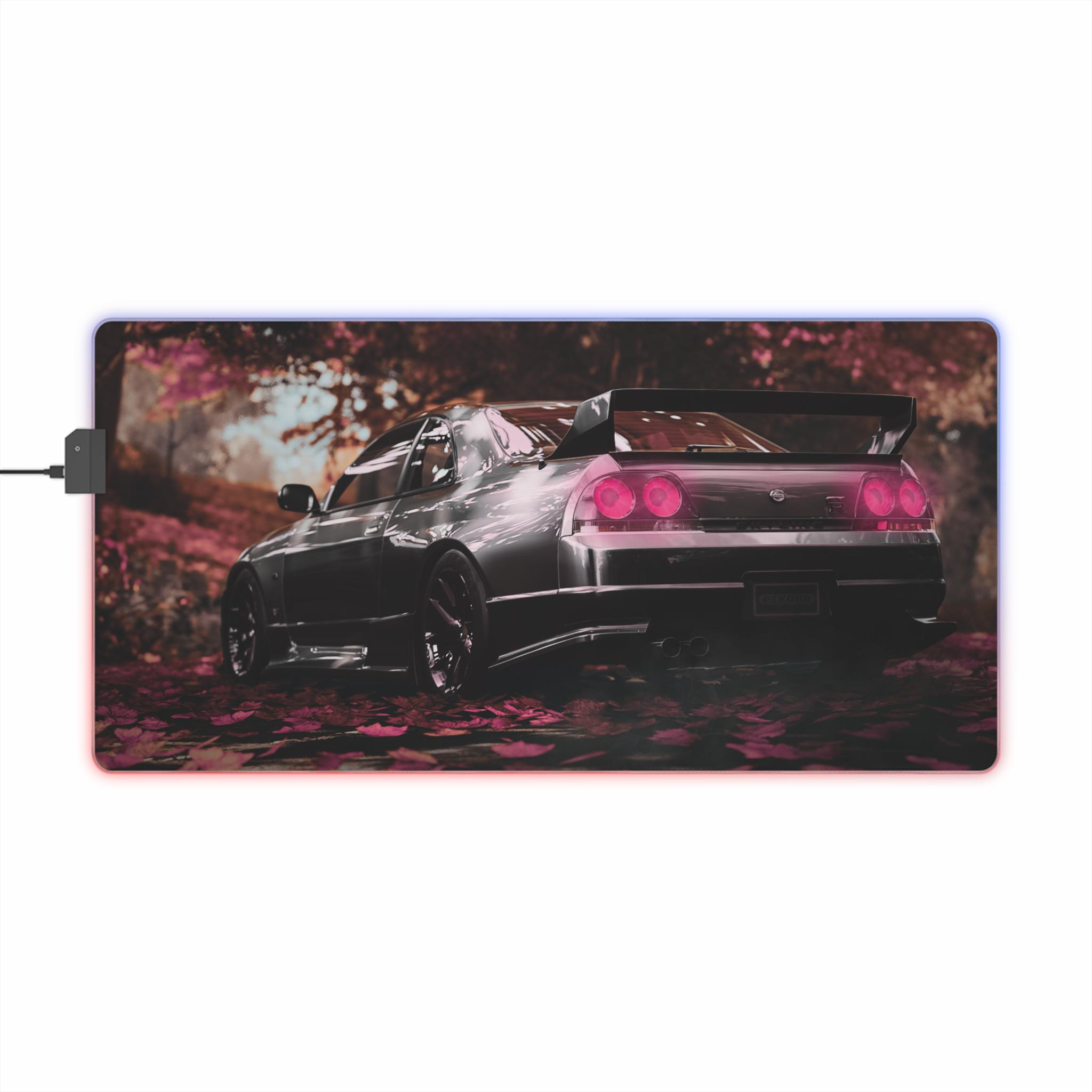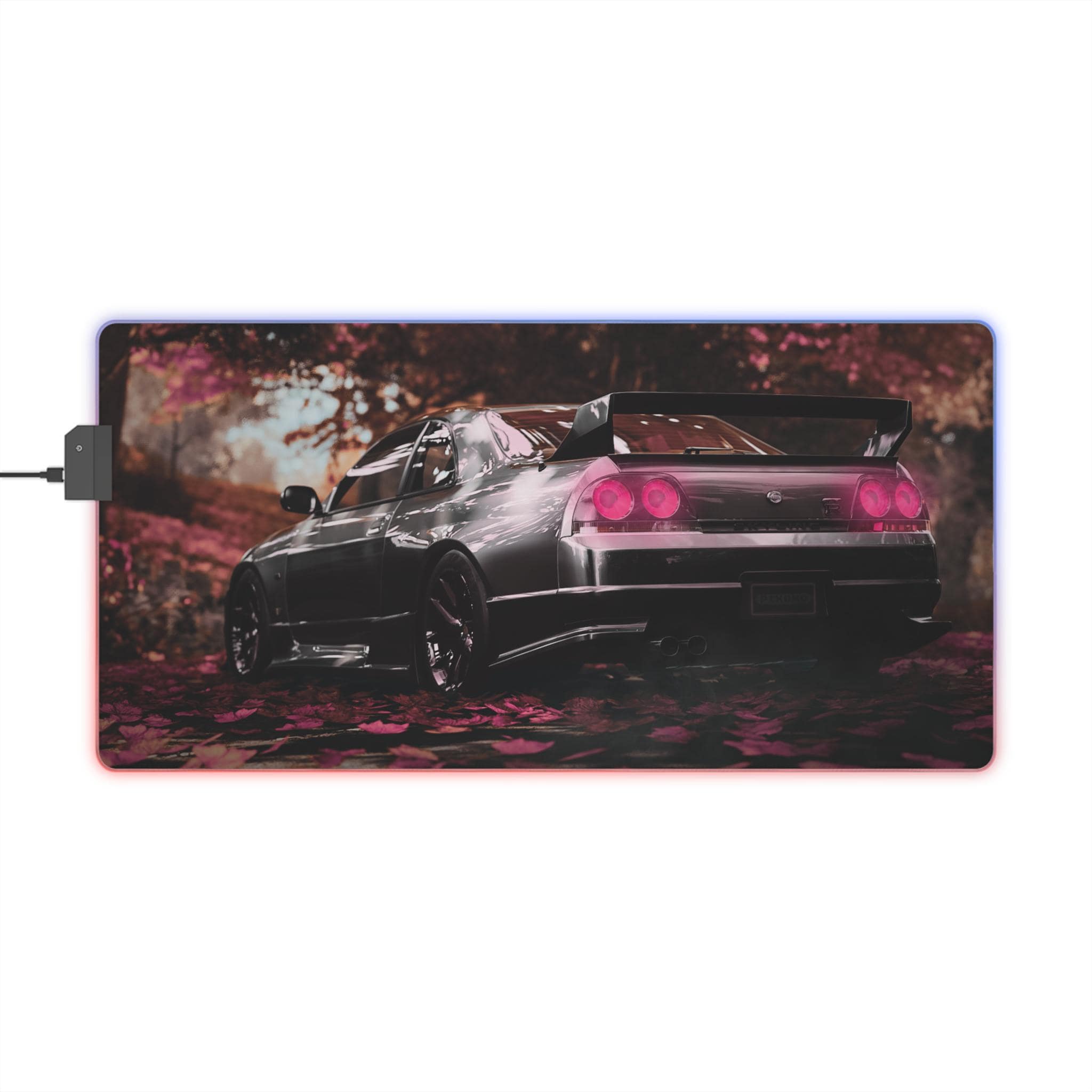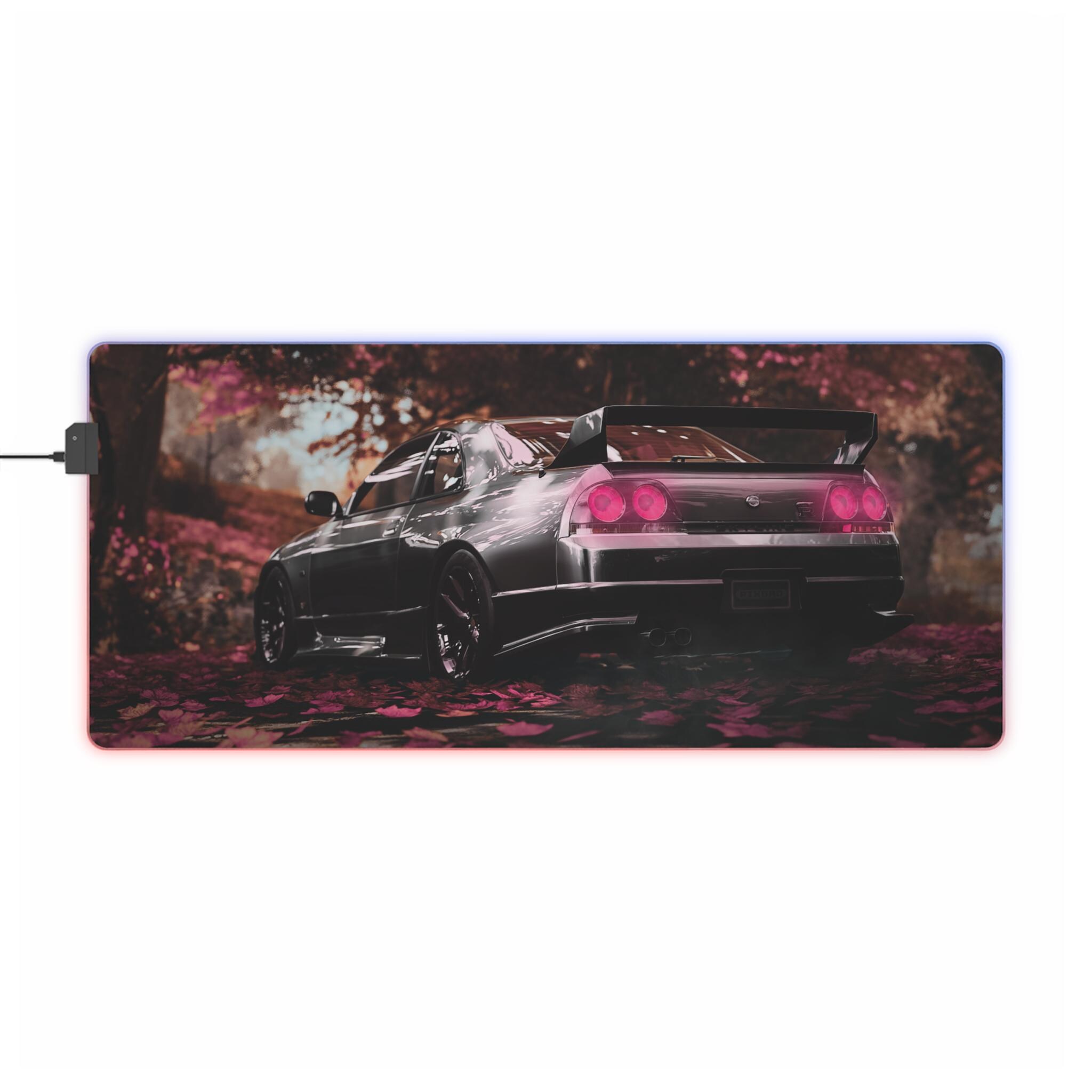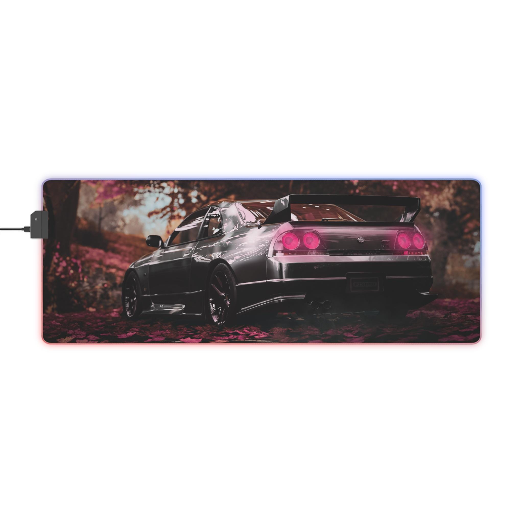 Wake up your desktop with an LED gaming mouse pad that blends fast, smooth tracking with mood lighting. The printed surface keeps colors vibrant so detailed artwork — like a midnight-modified skyline ride — stays sharp while your mouse glides. Around the edge, an RGB LED strip adds low-profile ambient lighting you can switch between rich reds, blues, greens, purples, yellows and white to match your setup or late-night vibe. The low-friction polyester top and non-slip rubber base make it great for marathon sessions, and the detachable USB connector and included micro USB cable keep setup simple and tidy.