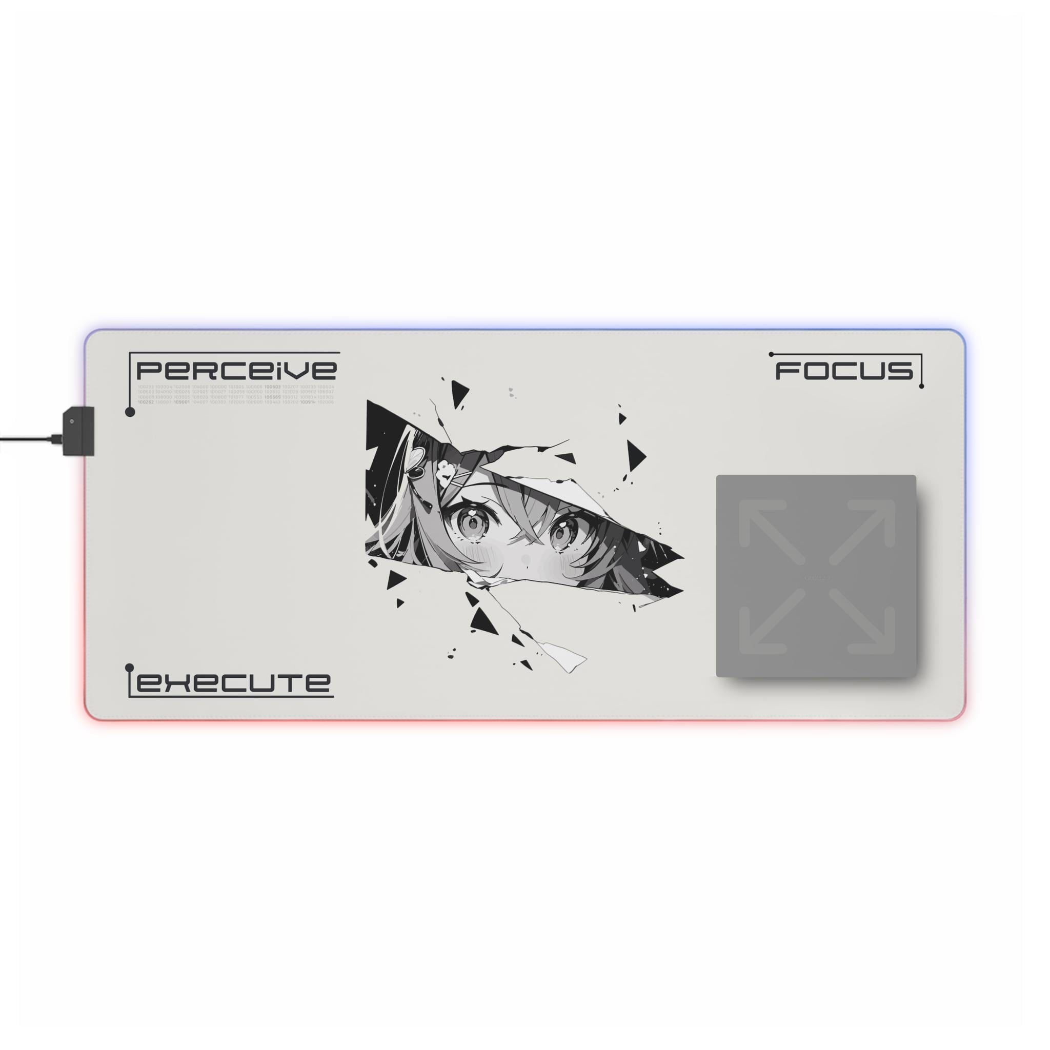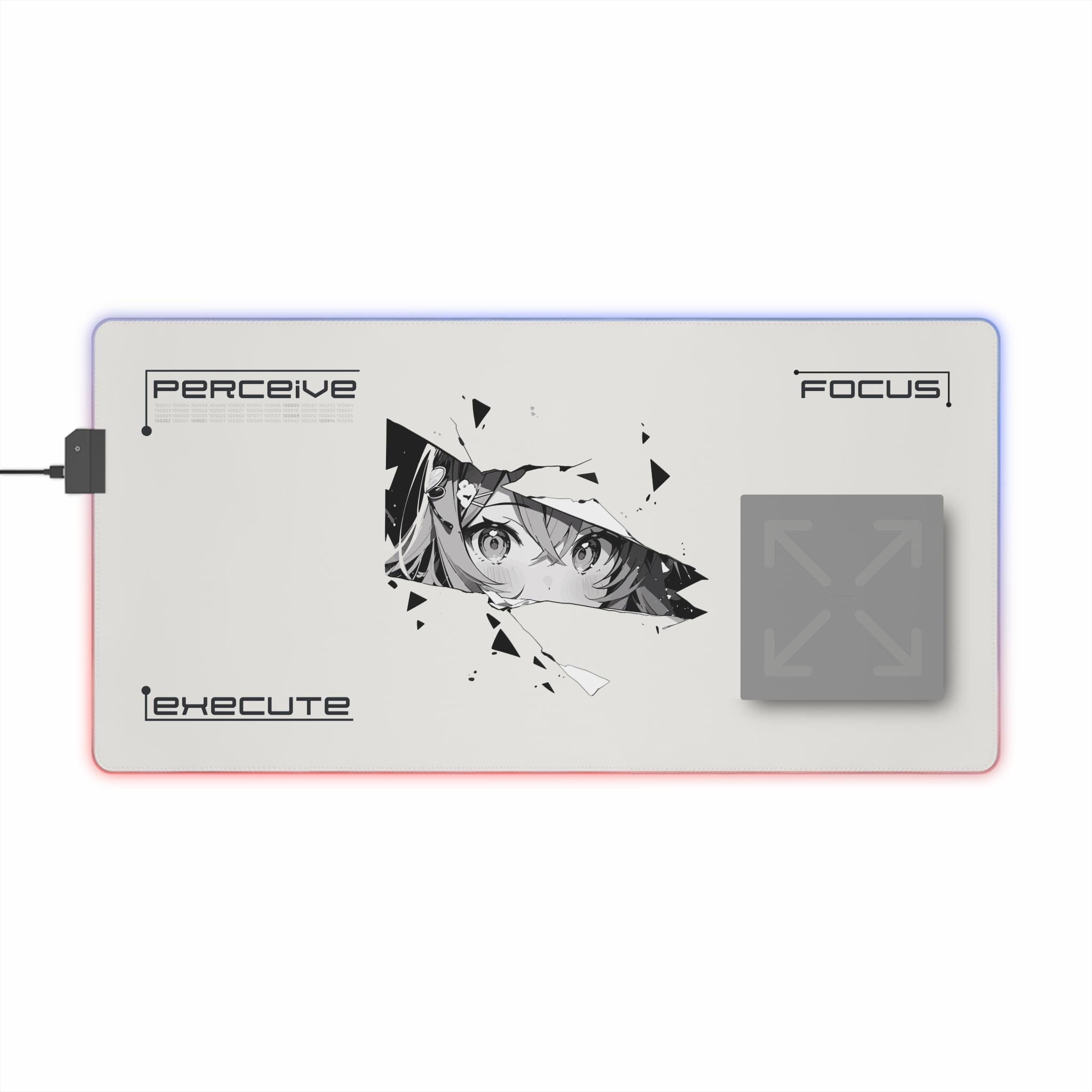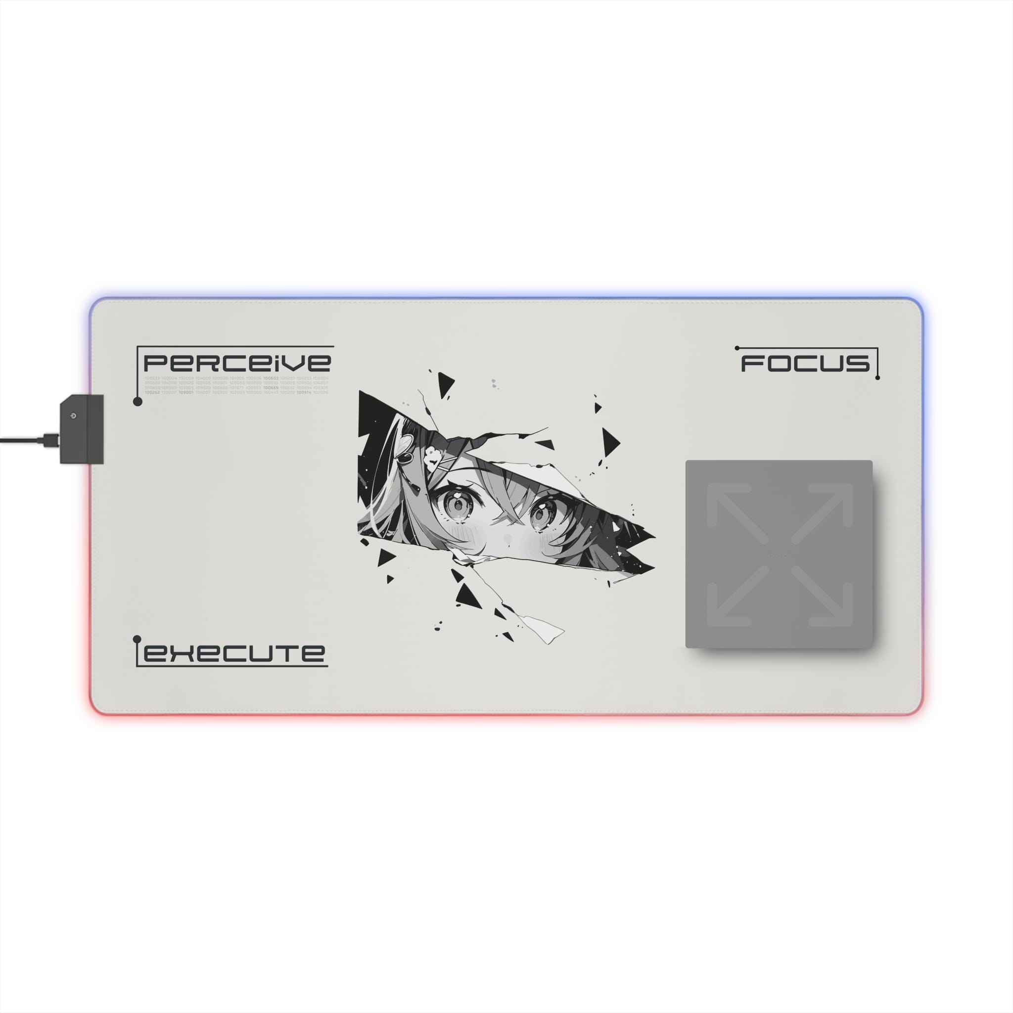 This LED gaming mouse pad brings atmosphere and precision to late-night sessions. A smooth polyester surface lets your mouse glide with confidence, while the edge-mounted RGB strip washes your desk in rich, changeable hues. The design centers on a fractured, anime-inspired gaze — a sharp, moody focal point that adds personality without shouting. The dense rubber base keeps the pad planted during clutch plays or marathon edits. Plug in the included micro-USB cable, detach the connector when you need to stow or swap, and choose a color to match your setup or mood. It's made for focused players who value control, style, and a little cinematic flair when the lights go down.