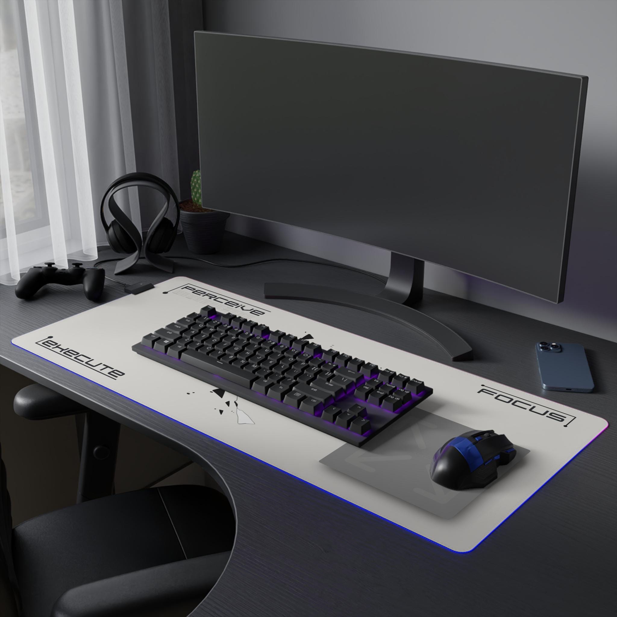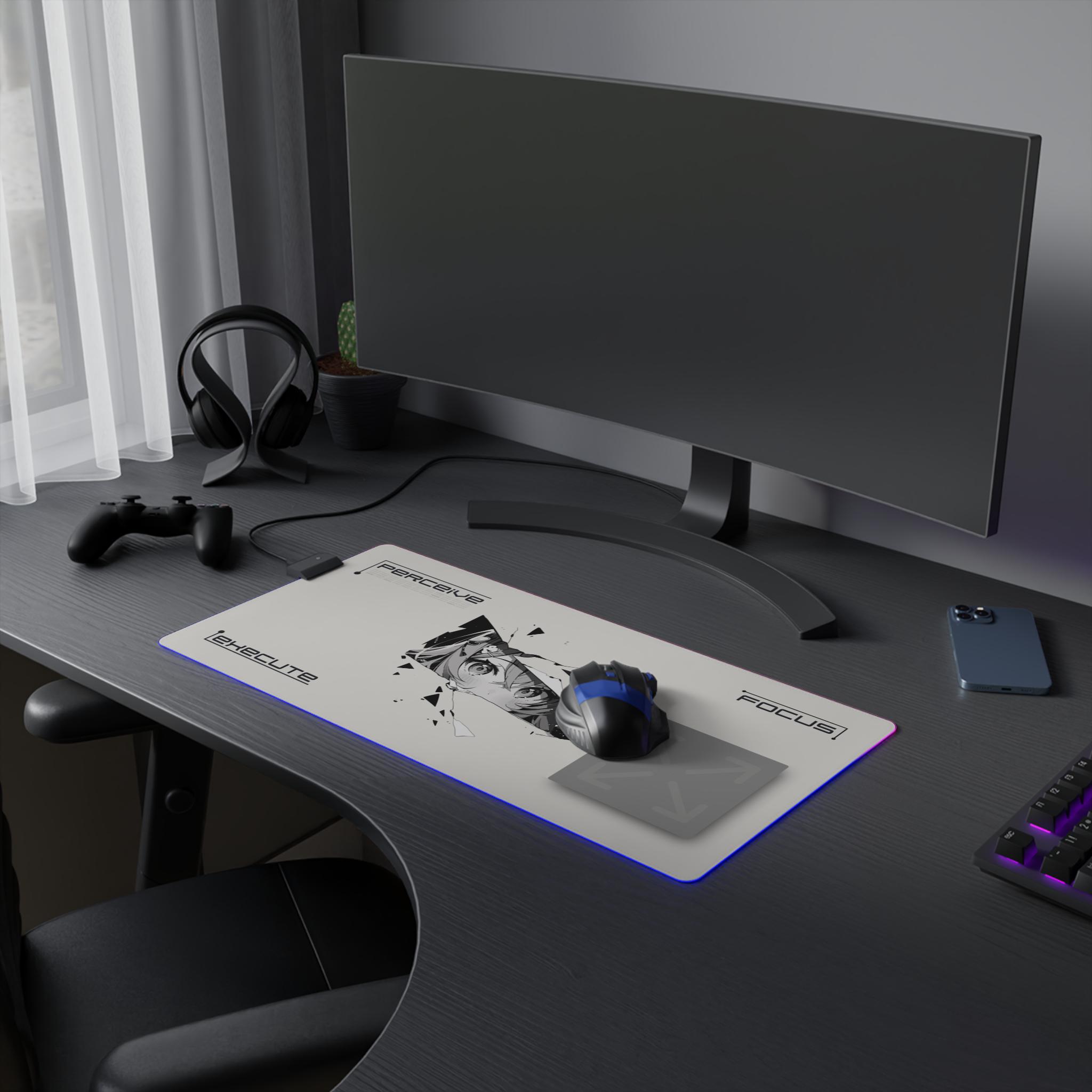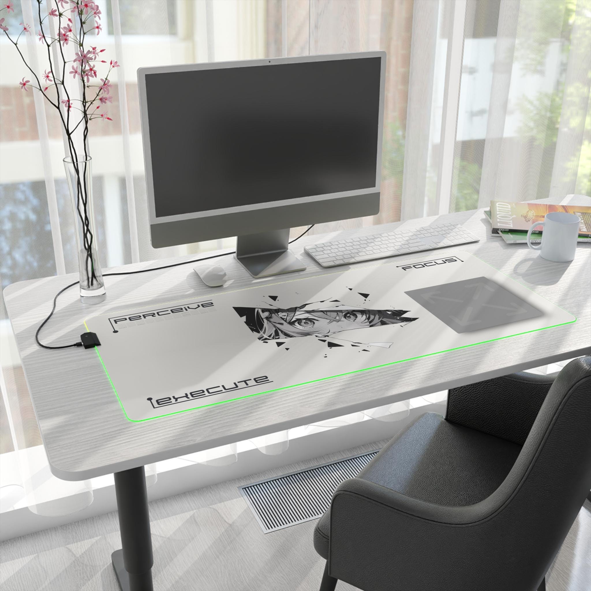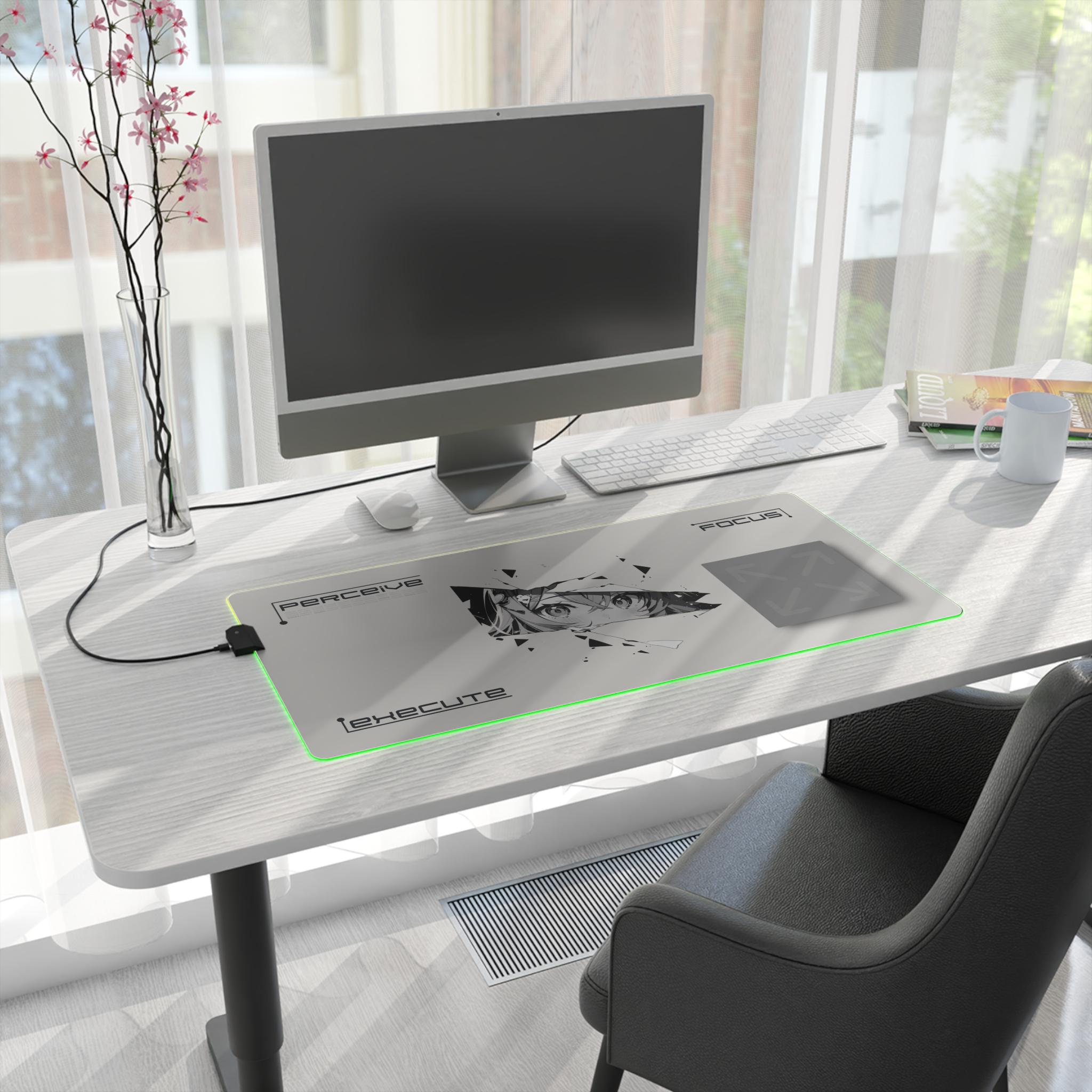 This LED gaming mouse pad brings atmosphere and precision to late-night sessions. A smooth polyester surface lets your mouse glide with confidence, while the edge-mounted RGB strip washes your desk in rich, changeable hues. The design centers on a fractured, anime-inspired gaze — a sharp, moody focal point that adds personality without shouting. The dense rubber base keeps the pad planted during clutch plays or marathon edits. Plug in the included micro-USB cable, detach the connector when you need to stow or swap, and choose a color to match your setup or mood. It's made for focused players who value control, style, and a little cinematic flair when the lights go down.