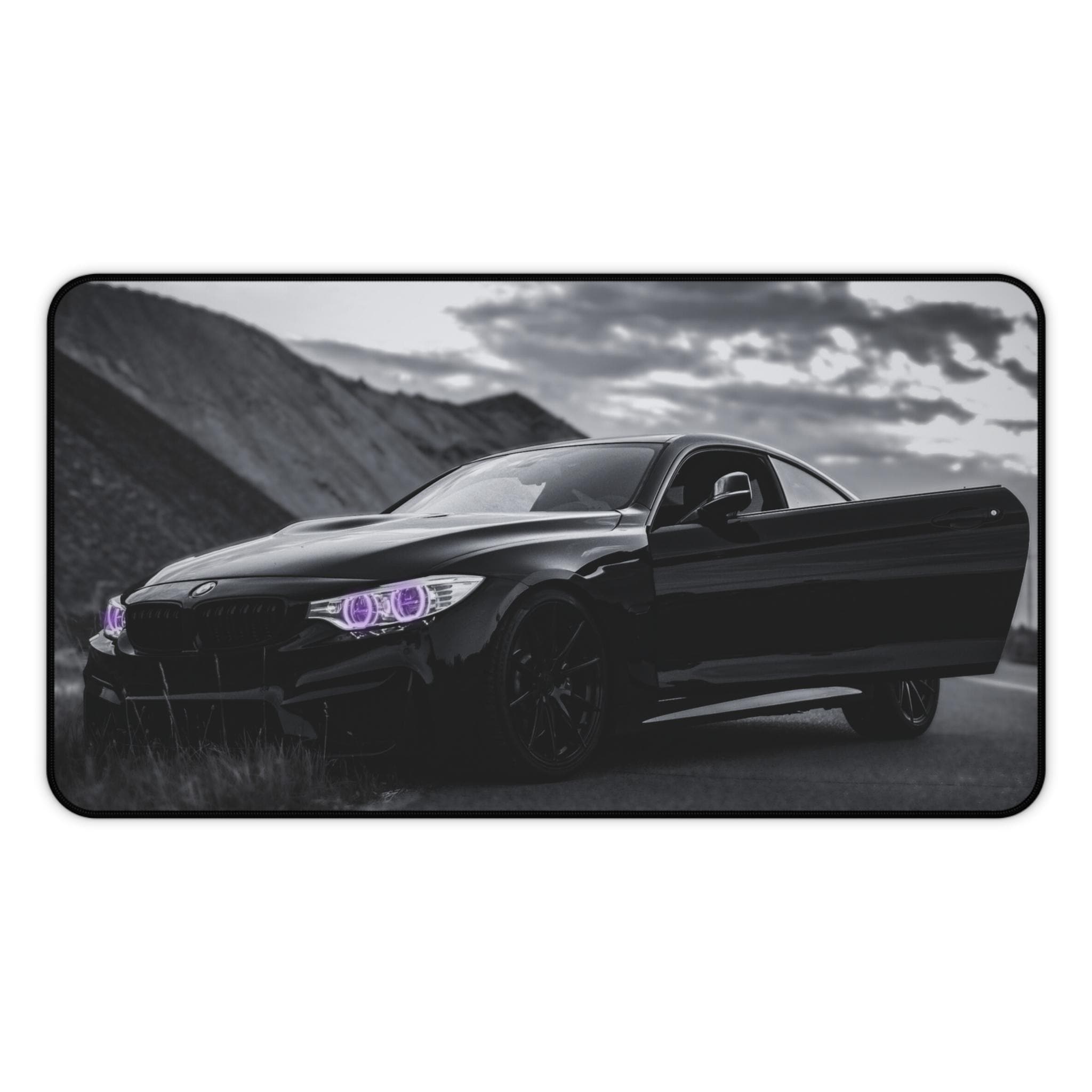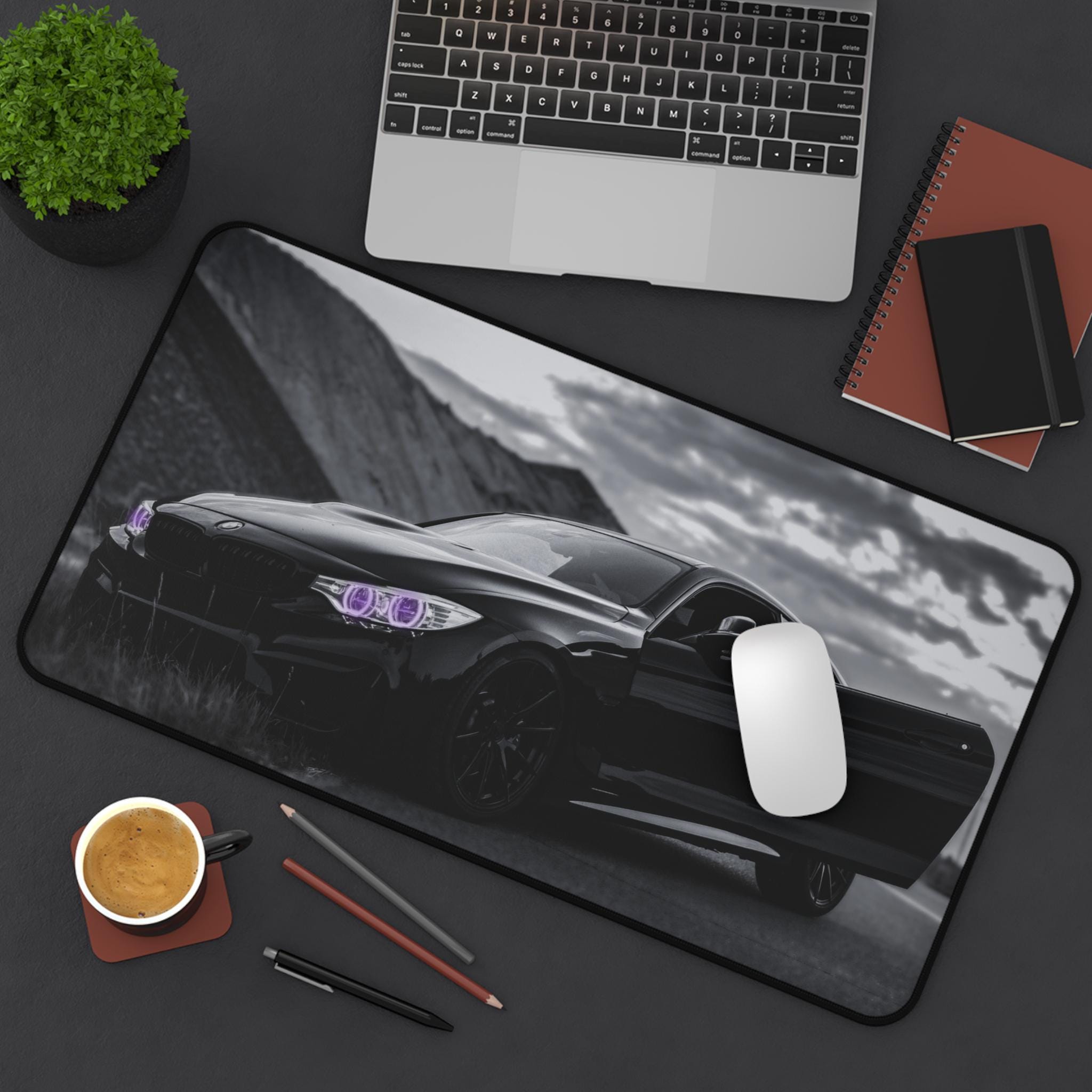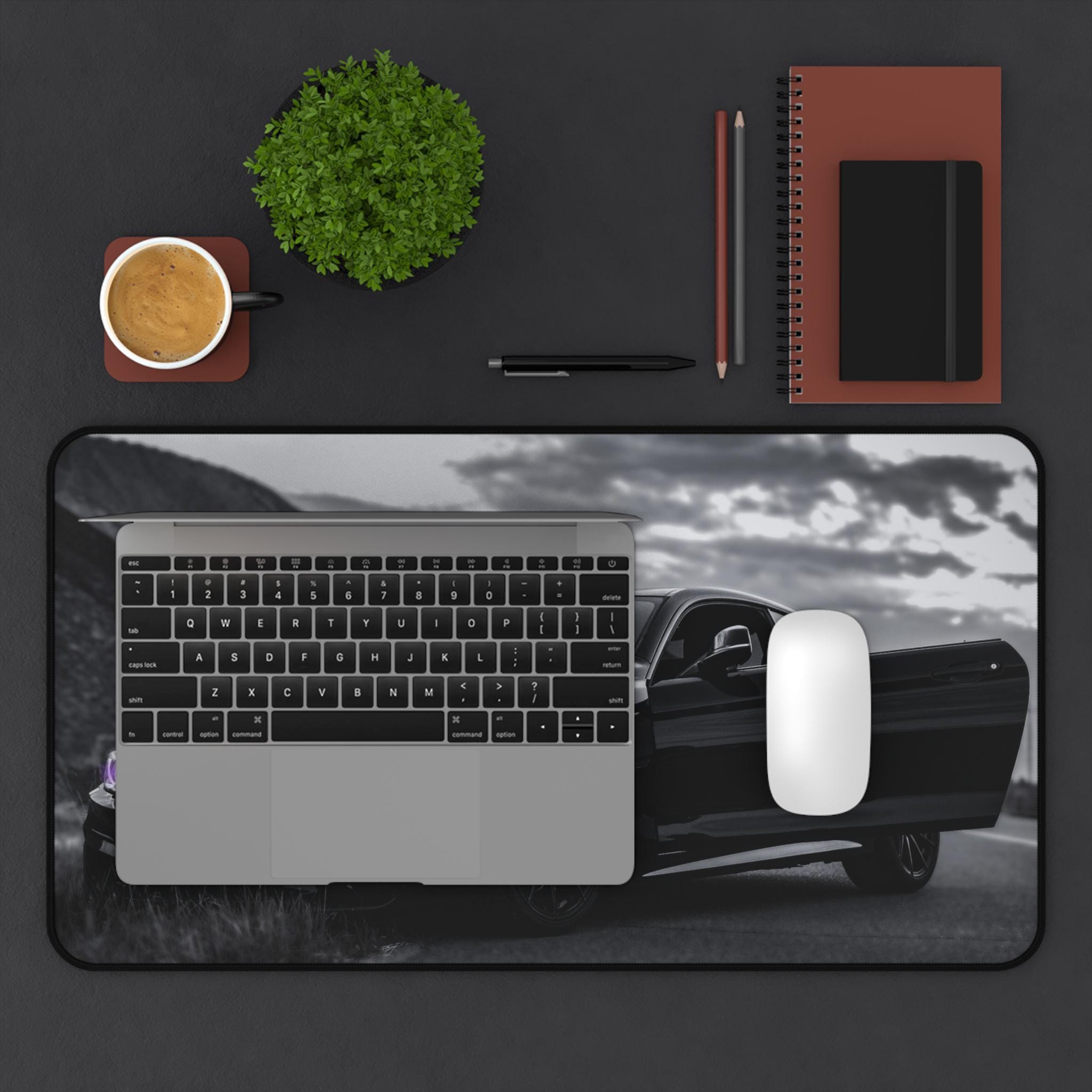 Slide into focus with a desk mat that brings automotive edge to your workspace. Matte black neoprene absorbs glare while the high-contrast car image and subtle purple accents add attitude without shouting. It smooths out mouse movement, protects surfaces from coffee rings and pen marks, and lays down a tactile, grippy foundation for late-night builds, photo edits, or track-day planning. The stitched edge keeps the design crisp after long use, and three size options let you frame your keyboard and mouse or cover an entire desk.
