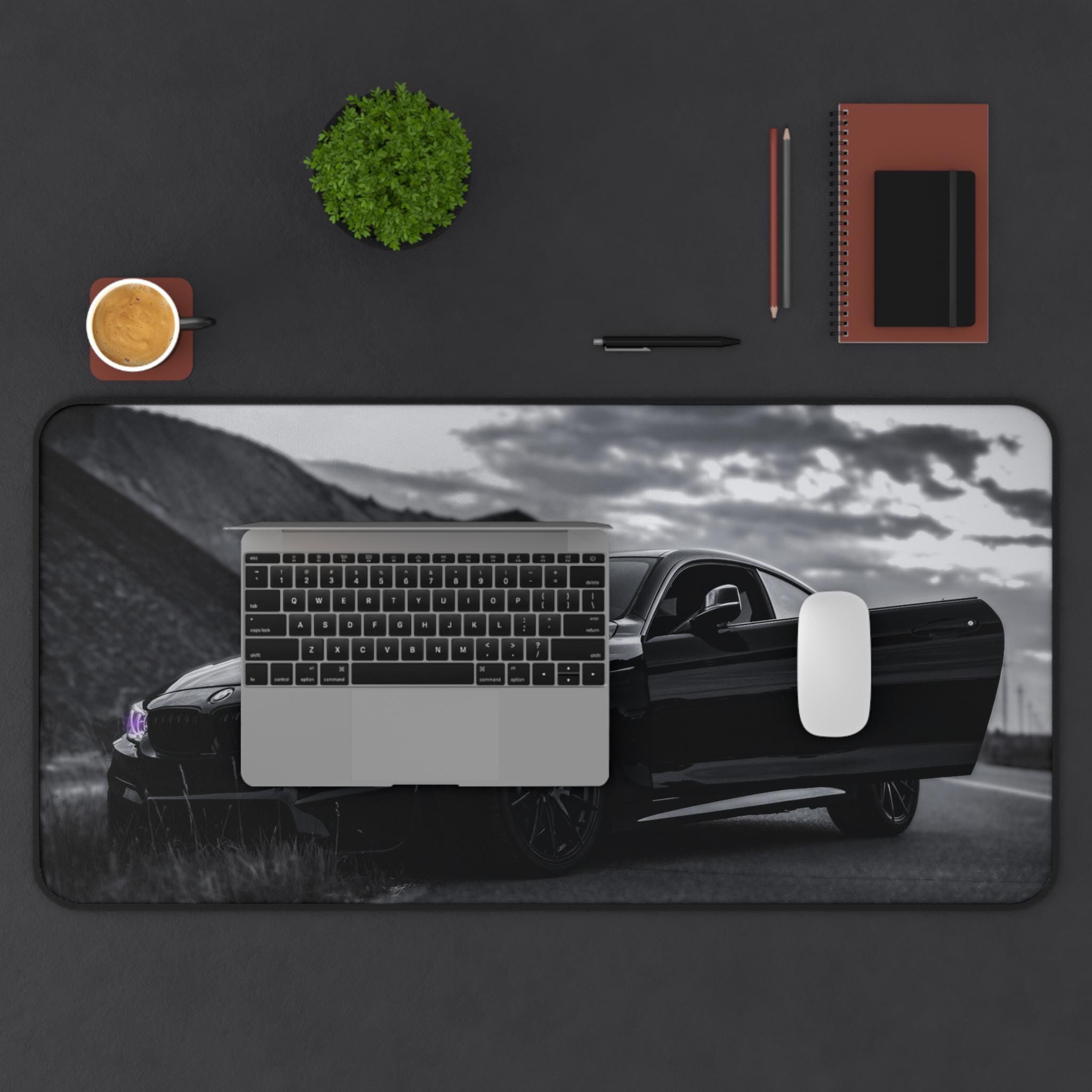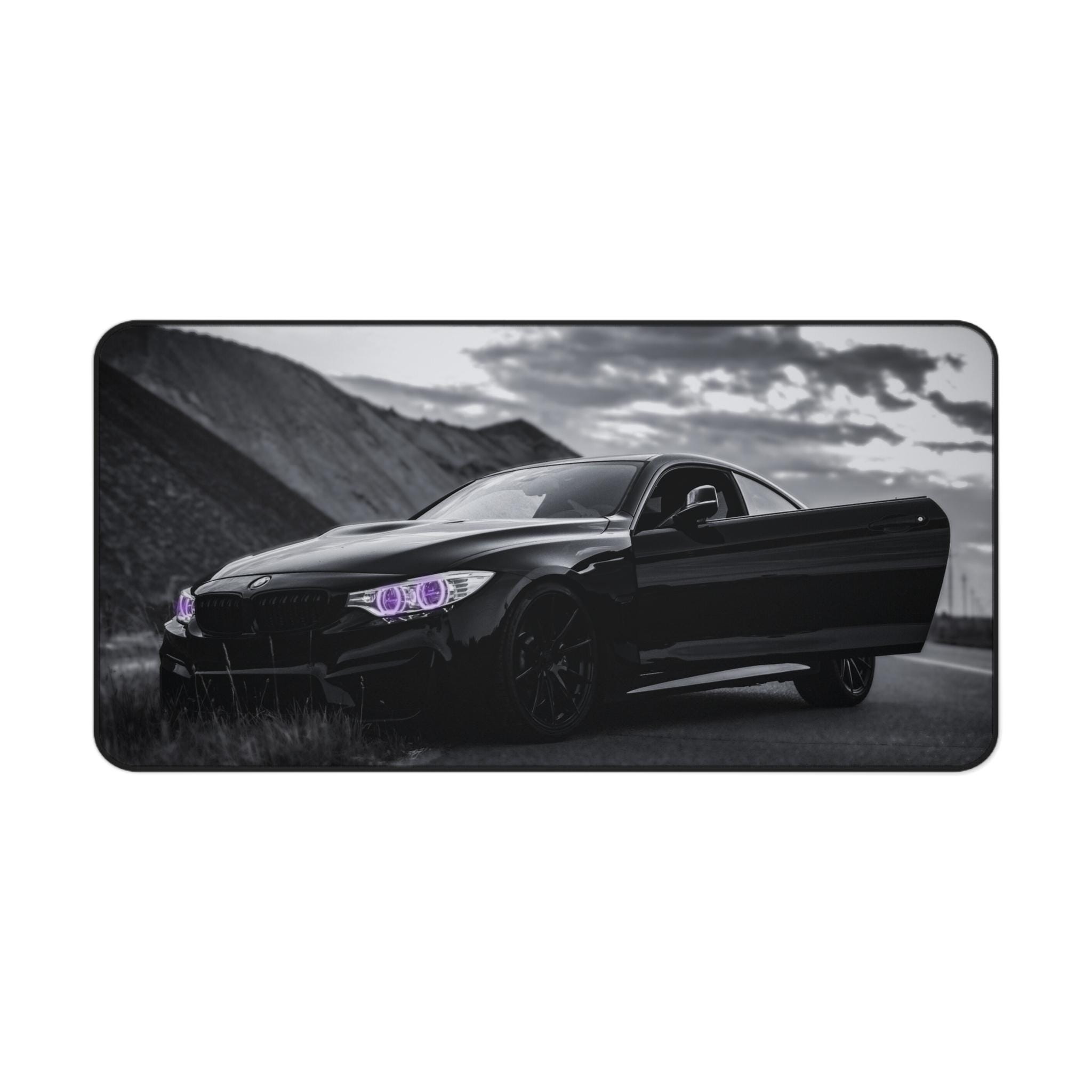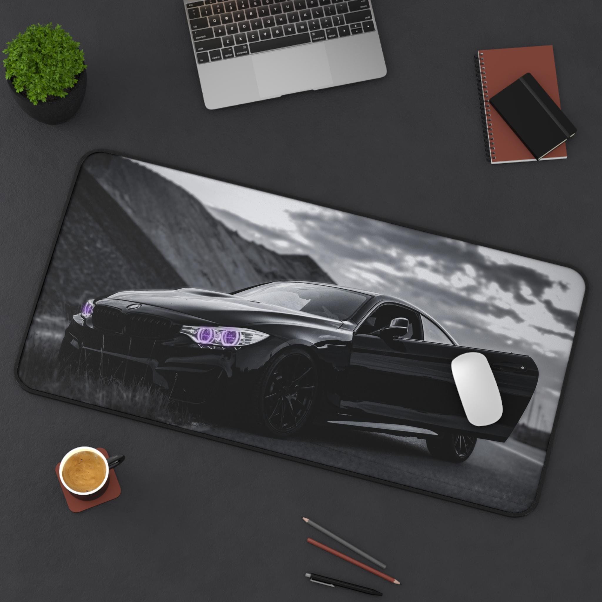 Slide into focus with a desk mat that brings automotive edge to your workspace. Matte black neoprene absorbs glare while the high-contrast car image and subtle purple accents add attitude without shouting. It smooths out mouse movement, protects surfaces from coffee rings and pen marks, and lays down a tactile, grippy foundation for late-night builds, photo edits, or track-day planning. The stitched edge keeps the design crisp after long use, and three size options let you frame your keyboard and mouse or cover an entire desk.