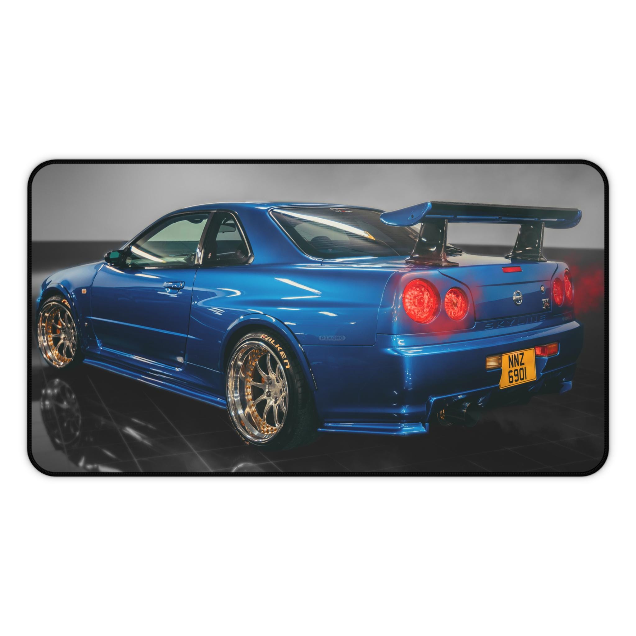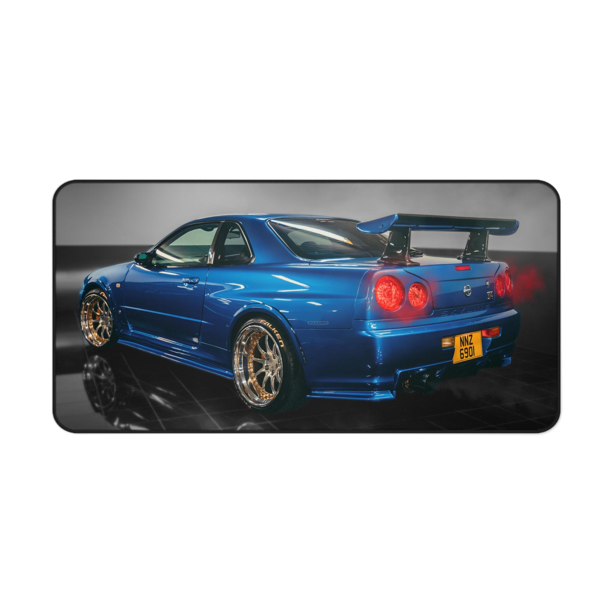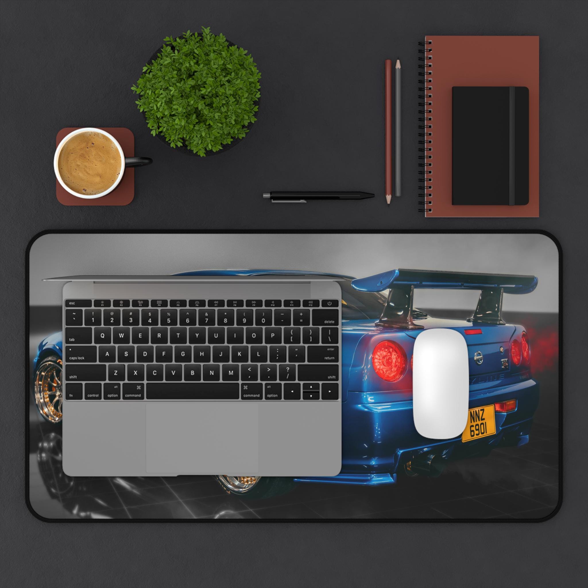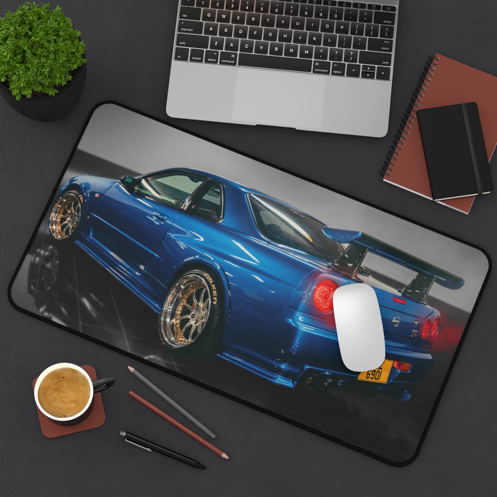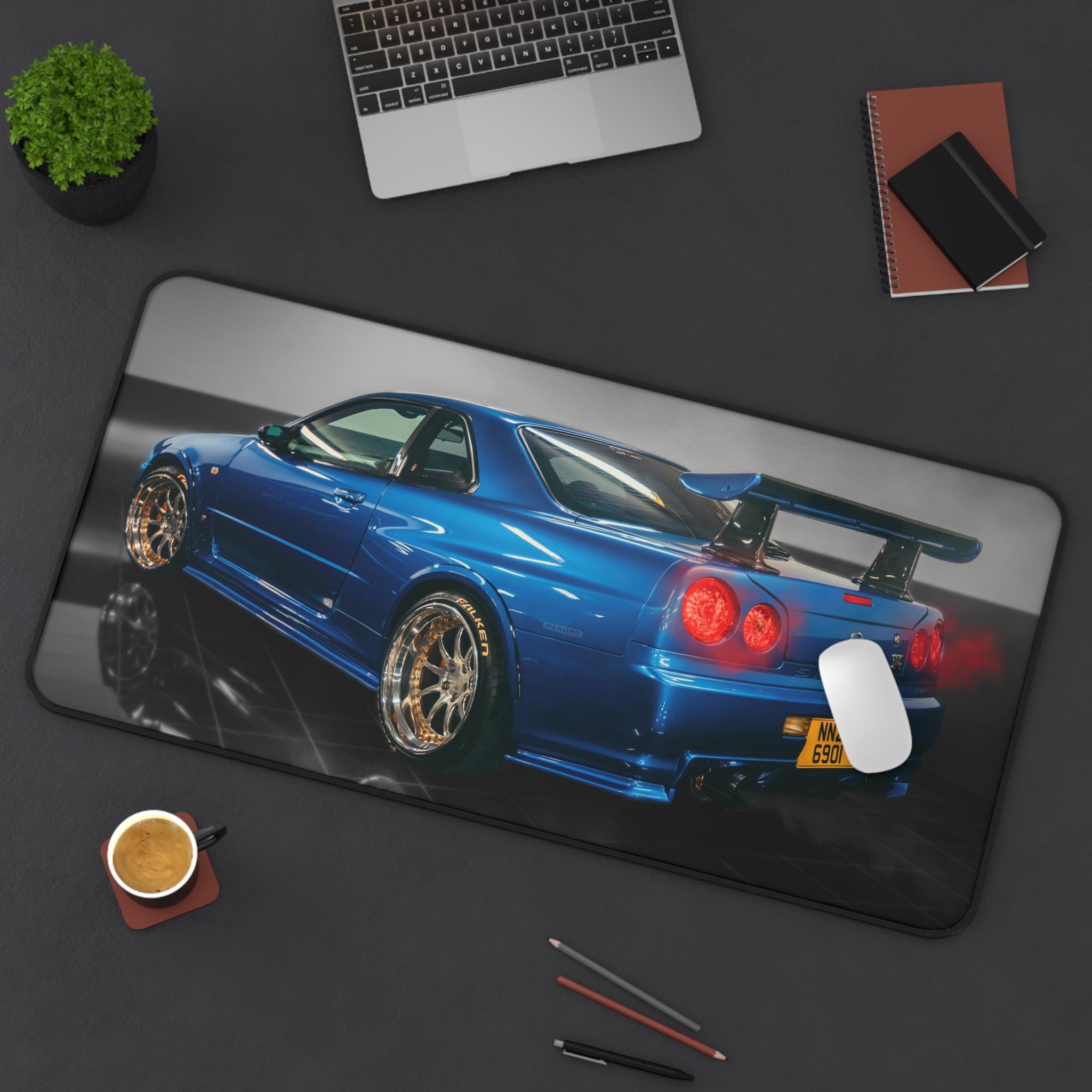 Slide into a focused, fast-paced workspace with this car-themed desk mat. The glossy blue sports car print brings the energy of a late-night garage and the hum of engines to your desk. Smooth neoprene surface supports mouse glides, writing, and craft projects while the textured, anti-slip backing keeps the mat planted during intense sessions. Hemmed edges resist fraying so the image stays crisp through long hours of use. Choose a size that suits your cockpit—whether you’re running a single monitor setup or building a full racing-inspired battlestation.